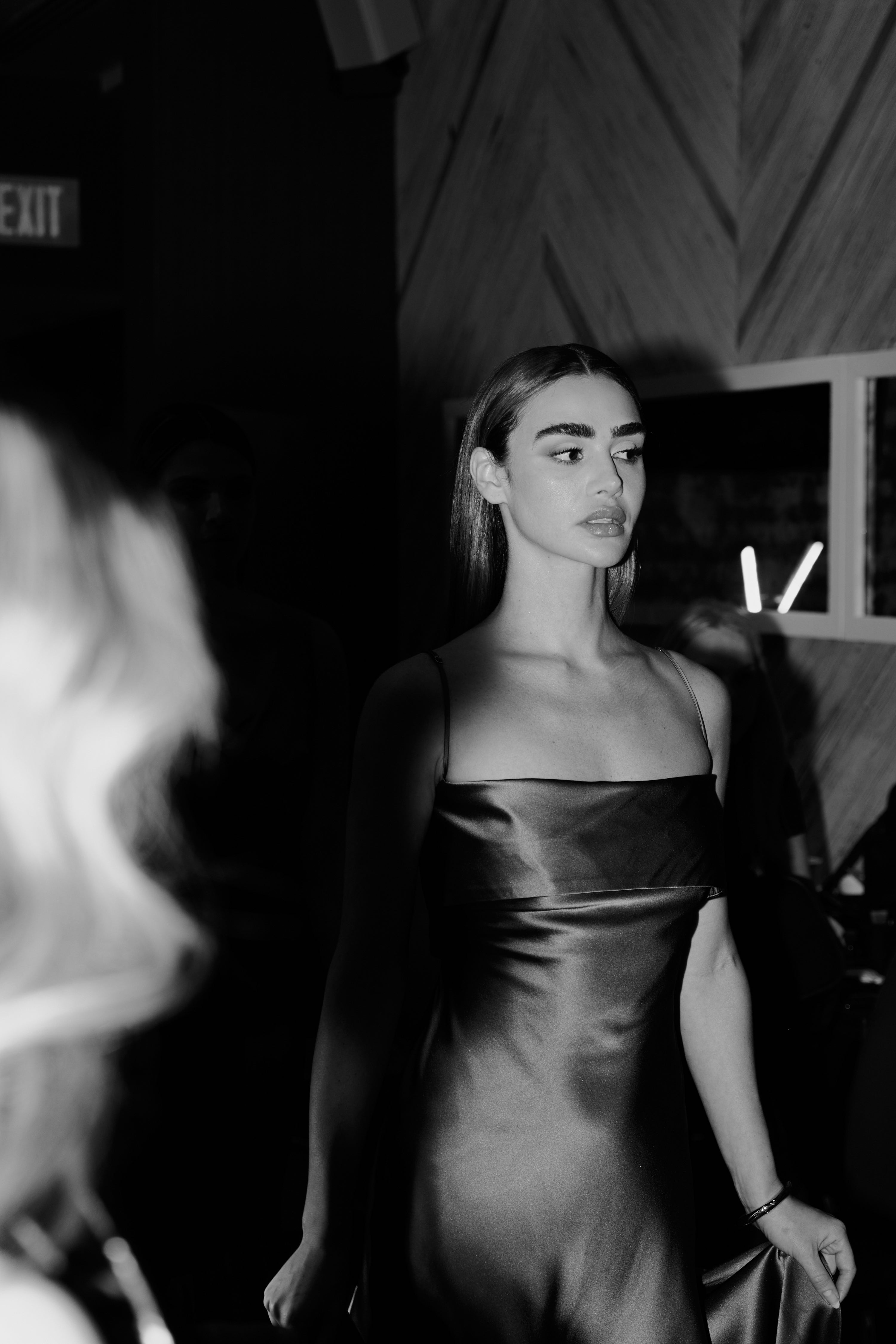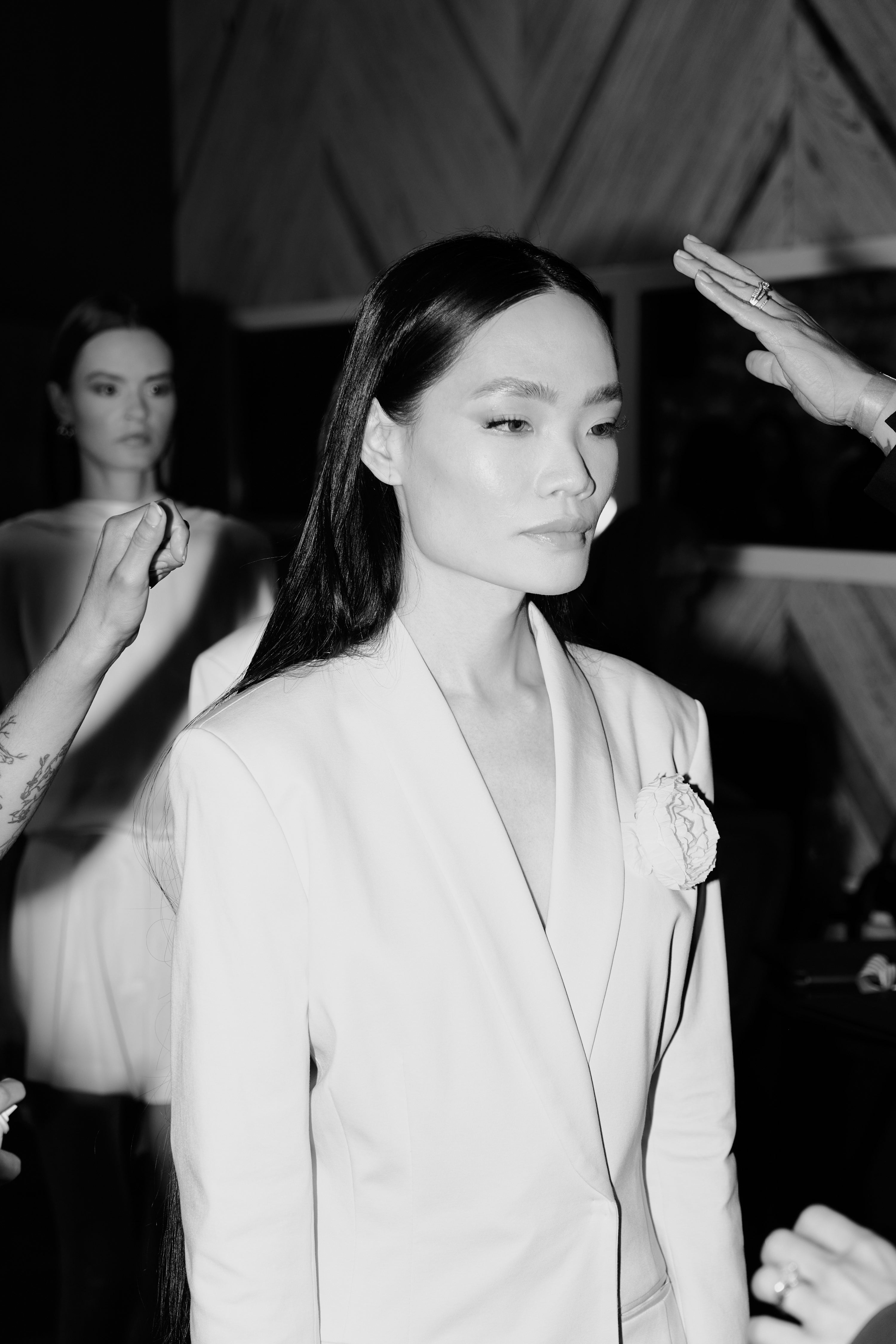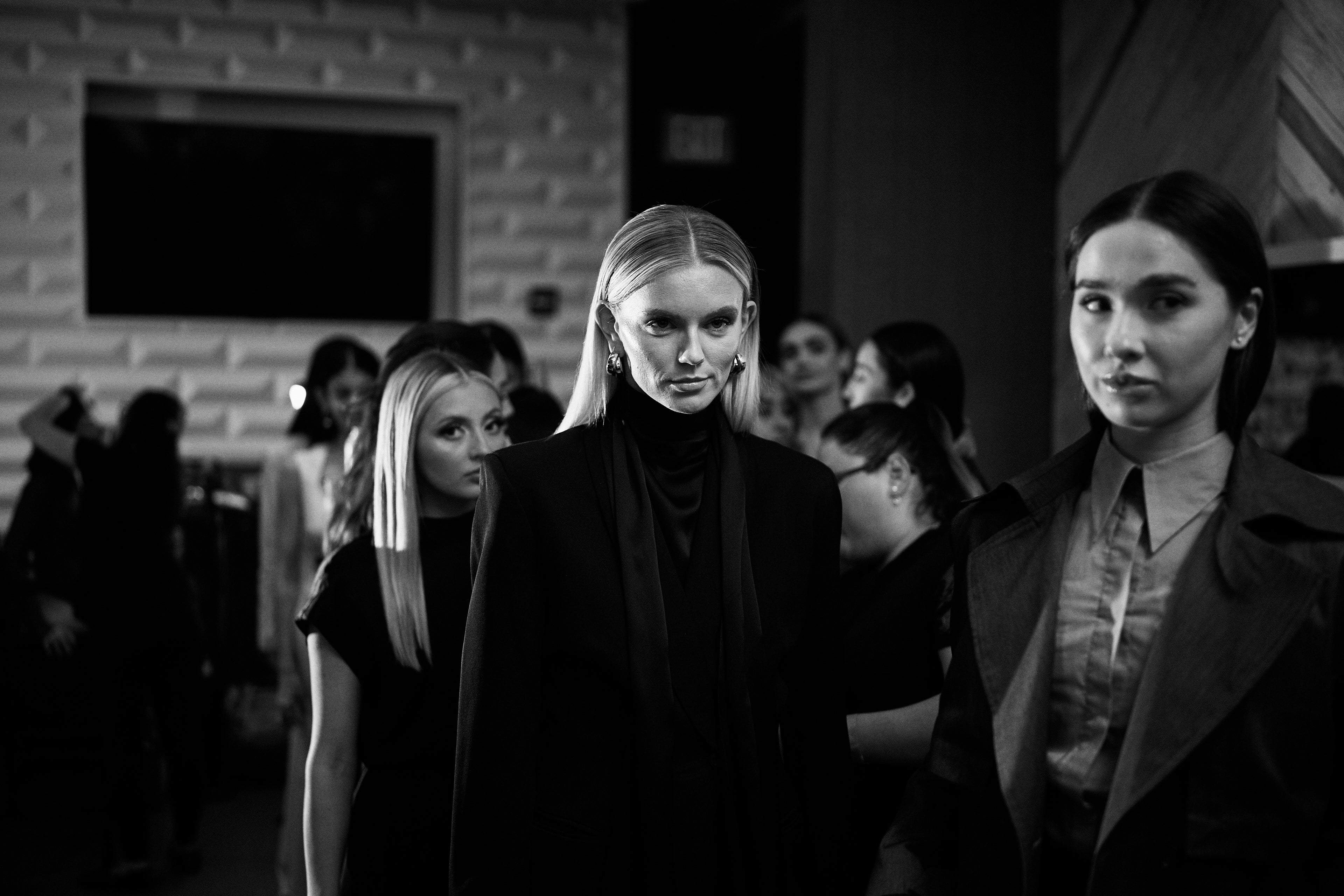 “Among the cool neutrals and muted shades of grey, slate and taupe we saw glimmers of shine and gloss dance on the silky fabrics of this cohesive, mature collection. The sustainable capsule wardrobe delivered pieces ranging from casual to formal, all with distinct clean lines and silhouettes.” - Presage Magazine said.