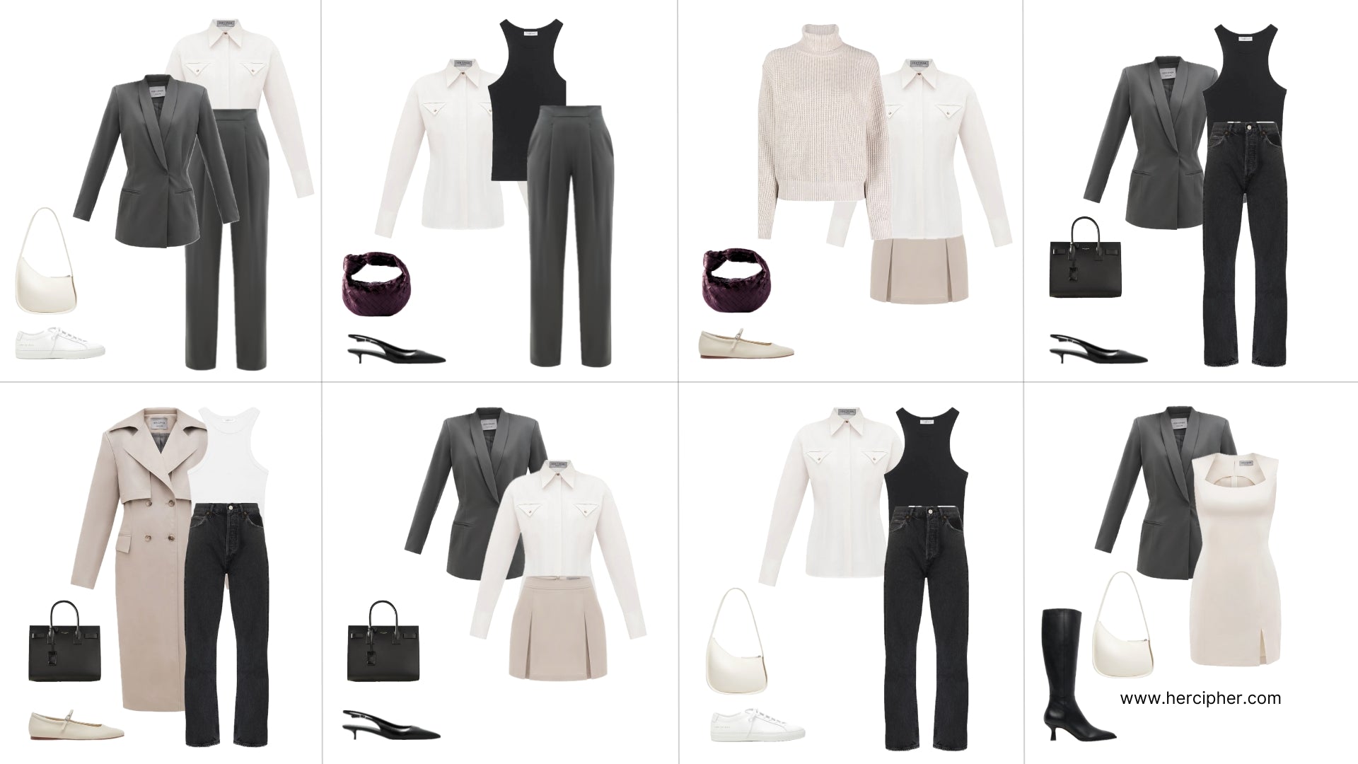 To go from day boardroom attire to a night cocktail look will be a breeze when everything fits and looks great. It's the next level of styling, but it will be so easy to nail after you've nailed the capsule. You'll be shocked at how easy it is to transition this type of clothing or add a few simple touches for the evening or a different occasion. The power of a capsule wardrobe lies in its ability to simplify your life and elevate your style effortlessly. Sometimes to see. more clear picture you need to remove lots of unnecessary things, and find really cool shoes and accessories to simply transform your look into a new variant of just work clothes.