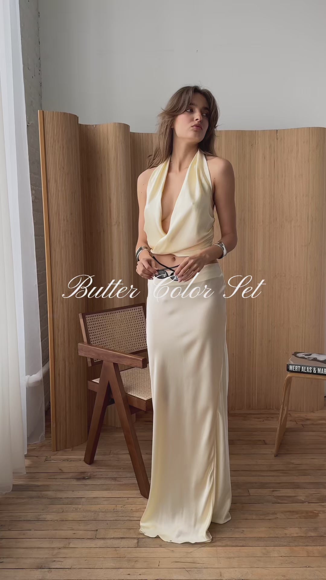 Meet the ultimate silk outfit for date night—the Siren Silk Maxi Skirt and Muse Halter Top, now bundled for effortless elegance. Crafted from 100% silk, this sustainable fashion set offers a flattering bias-cut skirt and a sleek halter blouse that elevate your wardrobe in seconds. This luxury silk co-ord combines modern sophistication with timeless style, perfect for romantic evenings, special events, or a chic night out. Designed to move with you - because confidence is always in fashion.